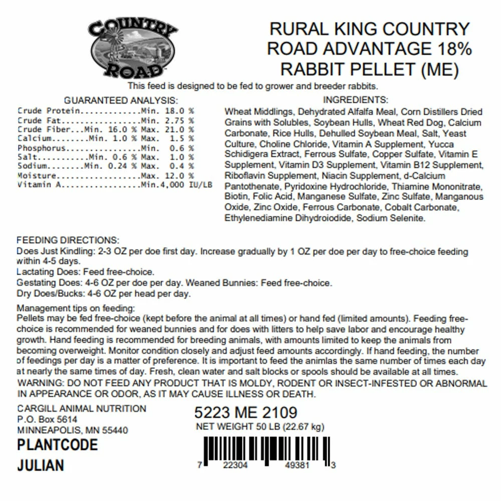 Feed Country Road™ Advantage Rabbit Pellets to grower and breeder rabbits.