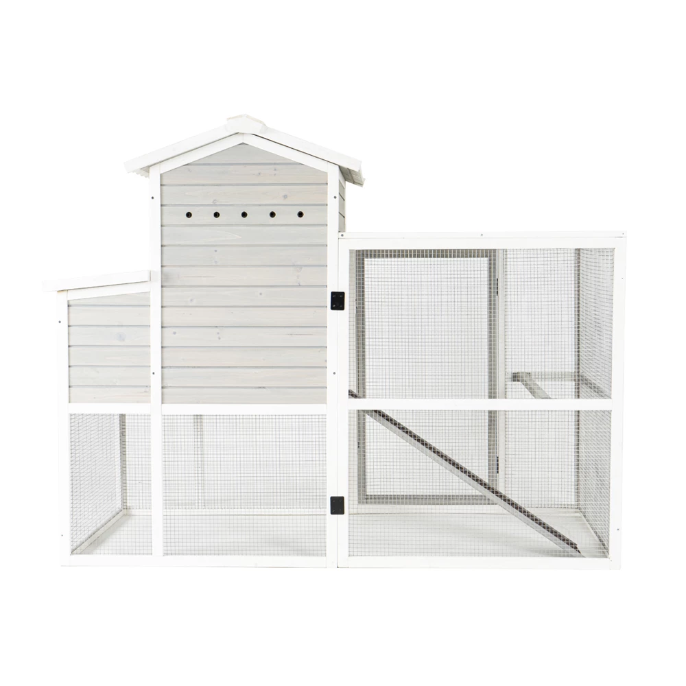 This chicken coop is perfect for my small farm. The PVC roof is durable and keeps my chickens dry during rainy days. Highly recommend!