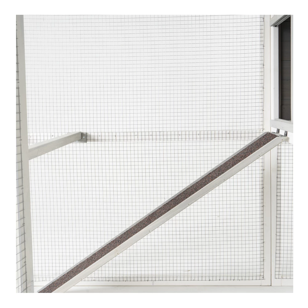 The elevated resting and nesting houses are elevated to keep your birds warm and dry, with a sliding door and ramp to allow poultry to enter the raised housing area.The convenient wire door design allows you to watch your birds without disturbing them, and the removable bottom sliding tray makes cleaning easy.Plus, the lockable door with metal slide bolt ensures the safety of your birds in all seasons.