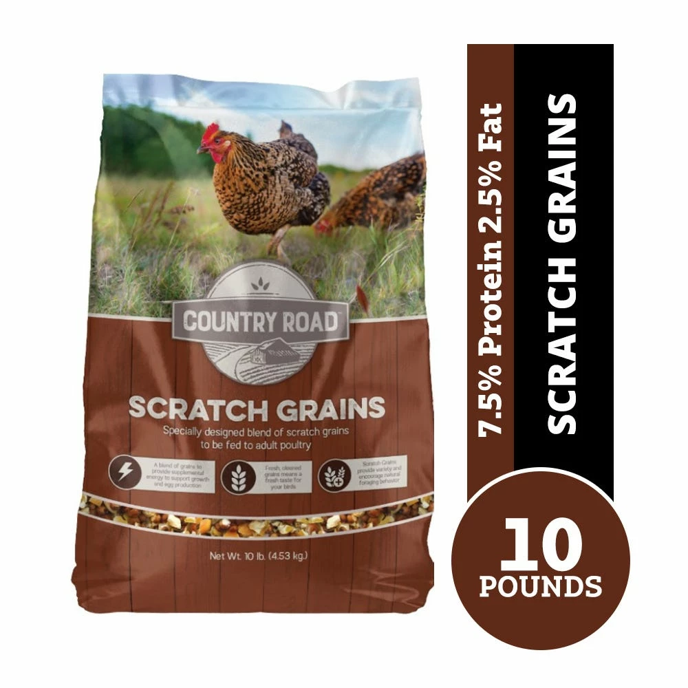 This specially designed blend of scratch grains is the perfect feed supplement for adult poultry. Made with high test-weight grains, Country Road Scratch Grains provide extra energy to support growth and egg production. Plus, they offer your flock more feed variety and encourage natural foraging behavior. Carefully cleaned to minimize foreign material and reduce feed dust, your birds will flock to this healthy and nutritious treat.