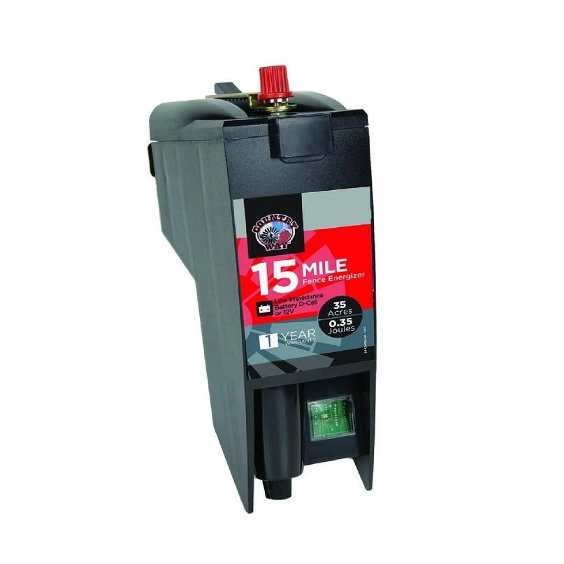 - Energizes 15 miles or 35 acres of fence under optimal conditions