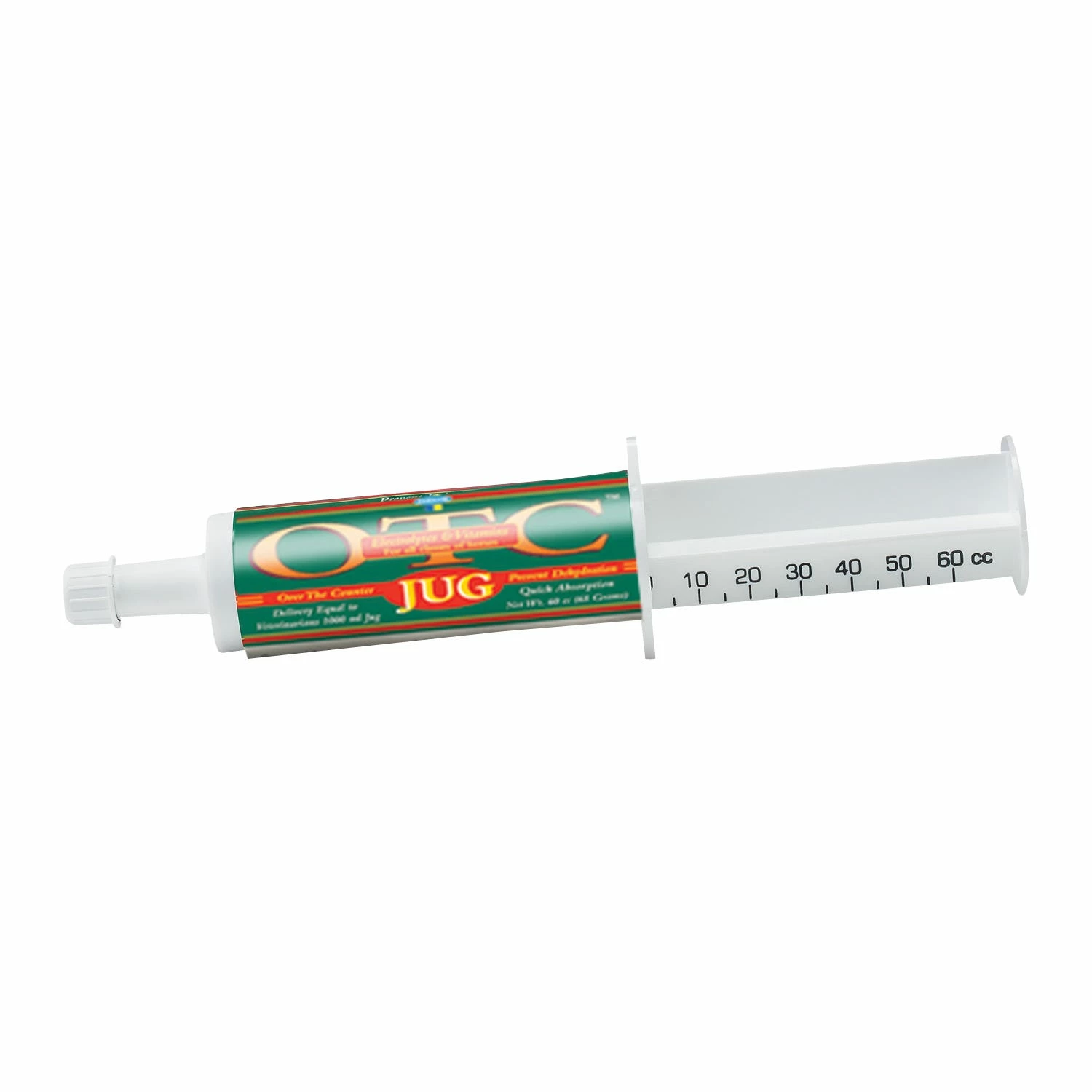 OTC™ Jug by Farnam is a paste form of a veterinarian’s 1000 ml electrolyte/vitamin jug. It contains a full complement of amino acids, plus vitamins and minerals needed to replenish vital nutrients and absorbs quickly. Use before or after workout. Give 1 full 60 cc tube onto back of tongue. Give 1/2 tube before or after light workout during hot weather to prevent dehydration. Use before or after an event to replace vitamins, minerals and amino acids lost during excessive exercise or heat. Keep ample drinking water supplied. THIS PRODUCT INTENDED FOR HORSES ONLY – DO NOT FEED TO CATTLE OR OTHER RUMINANTS.