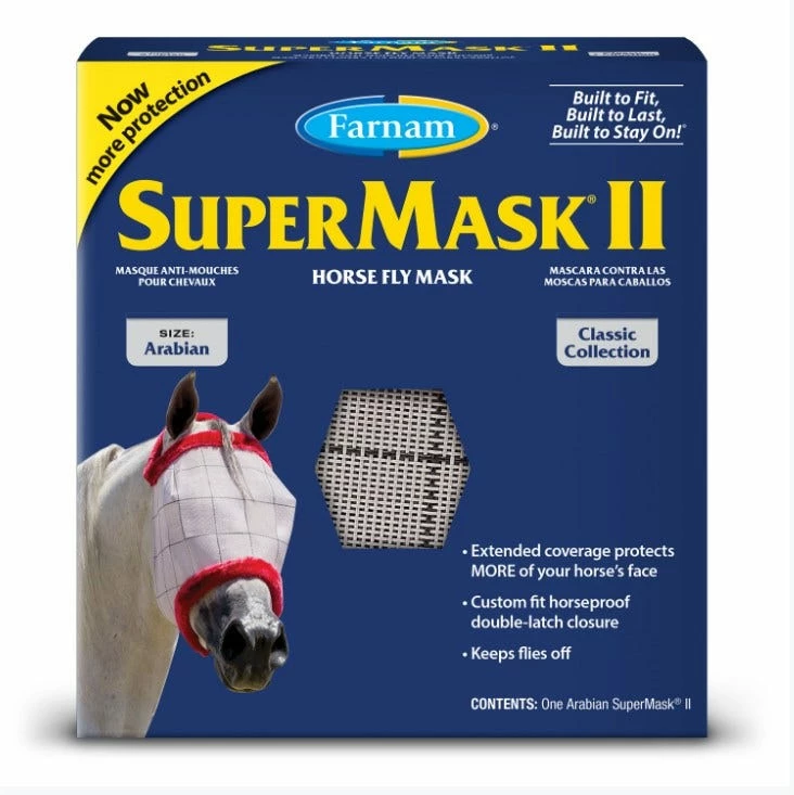 - The fly mask double-latch closure is located under the jaw, not on the cheekbone, making it harder for other horses to reach