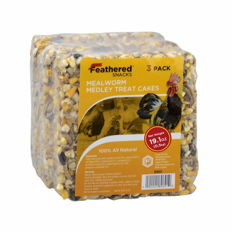Tasty treat made with cracked corn(43.4%), peanuts(20%), oat flakes(20%), mealworms(7%), flaxseeds(3%), sunflower seeds(5%), potato starch(1.5%) and potassium sorbate(0.1%)