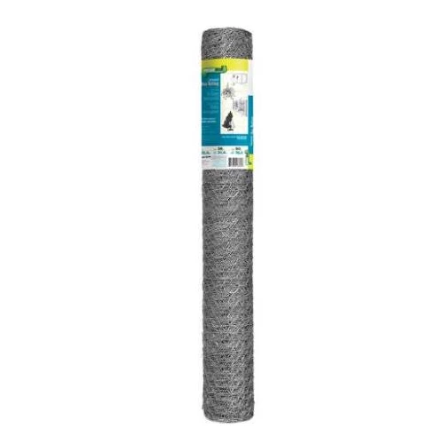 72in H x 50ft W Galvanized Hex Netting features a 1in hexagonal mesh weave design and is both lightweight and easy to use. The hex netting is galvanized with a zinc coating for added durability and to help prevent rusting. Chicken wire has many uses such as animal containment, plant protection and support, fencing applications, and many more.
