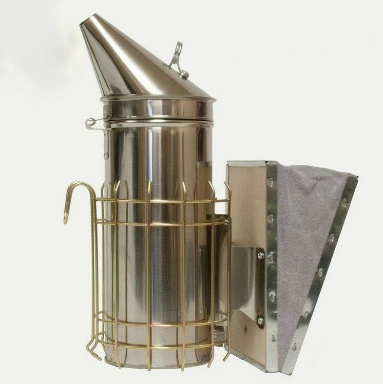 - Stainless steel Large Bee Smoker, used to help soothe the bees.