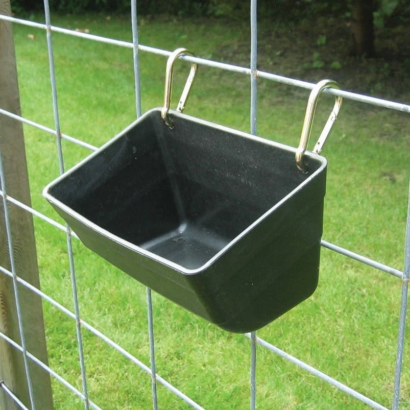 - Portable fence feeder with heavy – duty metal clips for hanging on wire fencing