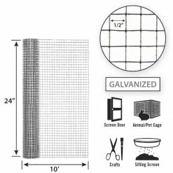 Garden Craft 24″ x 50′ Galvanized Hardware Cloth with 1/2″ Openings – 132450 – Fence and Wire