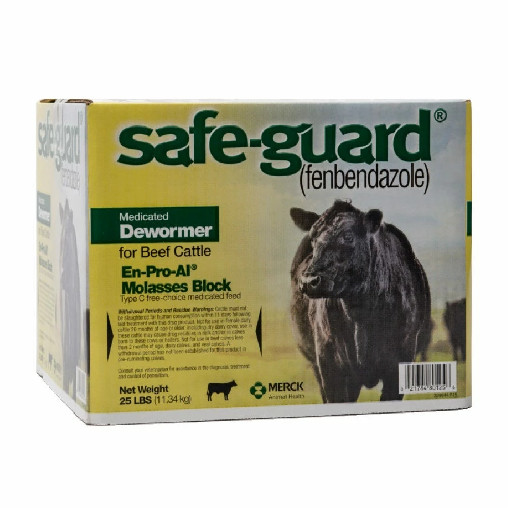 SAFE-GUARD® (fenbendazole) EN-PRO-AL® Molasses Block is indicated for the removal and control of: lungworms; stomach worms: barberpole worm, brown stomach worm, small stomach worm; intestinal worms: hookworm, thread-necked intestinal worm, small intestinal worms; bankrupt worms, and nodular worms.