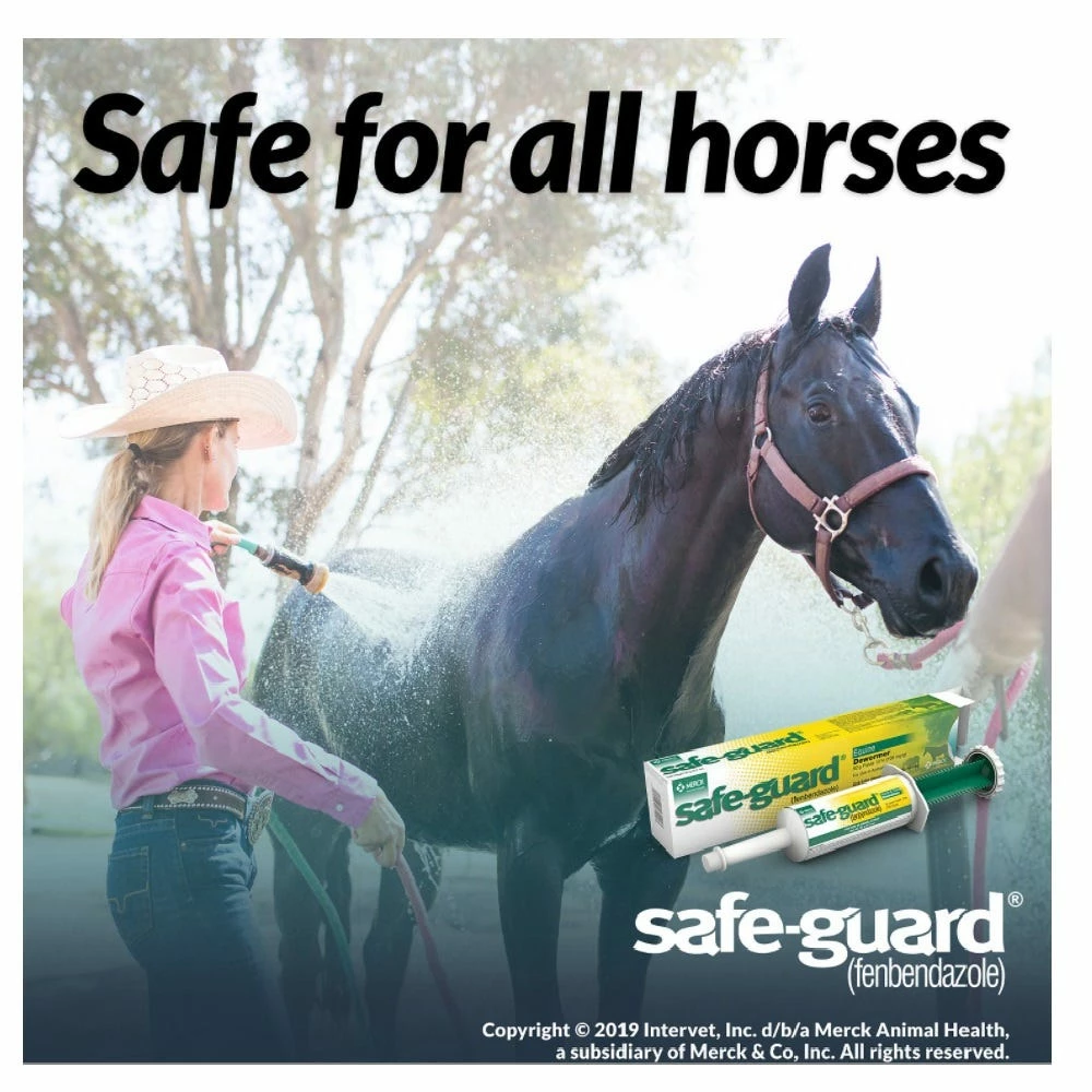 Safe-Guard Paste 10% is indicated for the control of large strongyles (Strongylus edentatus, S. equinus, S. vulgaris), encysted early 3rd stage (hypobiotic), late 3rd stage and 4th stage cyathostome larvae, small strongyles, pinworms (Oxyuris equi), ascarids (Parascaris equorum), and arteritis caused by 4th stage larvae of Strongylus vulgaris in horses. Safe-Guard Paste 10% is approved for use concomitantly with an approved form of trichlorfon. Trichlorfon is approved for the treatment of stomach bots (Gasterophilus spp.) in horses. Refer to the manufacturer’s label for directions for use and cautions for trichlorfon.