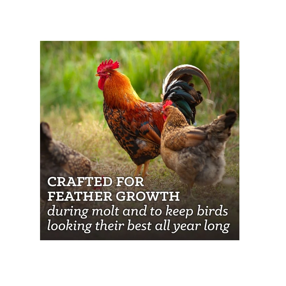 - May also be fed to laying hens and mature roosters year-round for optimal feathering and brilliant plumage