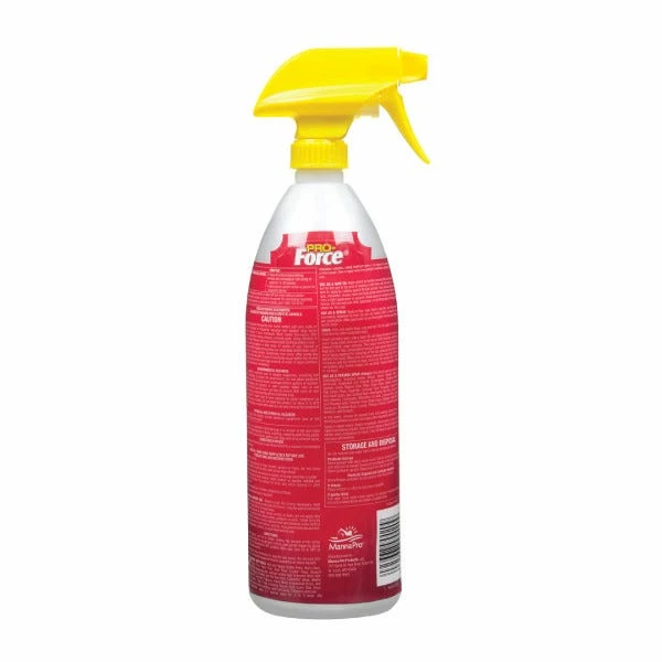 Manna Pro-Force Fly Spray is a fly repellent for use on horses, ponies, dogs and as a premise spray. Pro-Force kills and repels more than 70 listed species, including biting and nuisance flies, horse flies, ticks, gnats and mosquitoes. It also kills fleas and ticks on dogs. Pro-Force rapidly knocks down, kills and repels for up to 14 days. This ready-to-use formula requires no mixing. ACTIVE INGREDIENTS: Permethrin (0.20%), Pyrethrins (0.10%), N-Octyl bicycloheptene dicarboximide (0.48%)