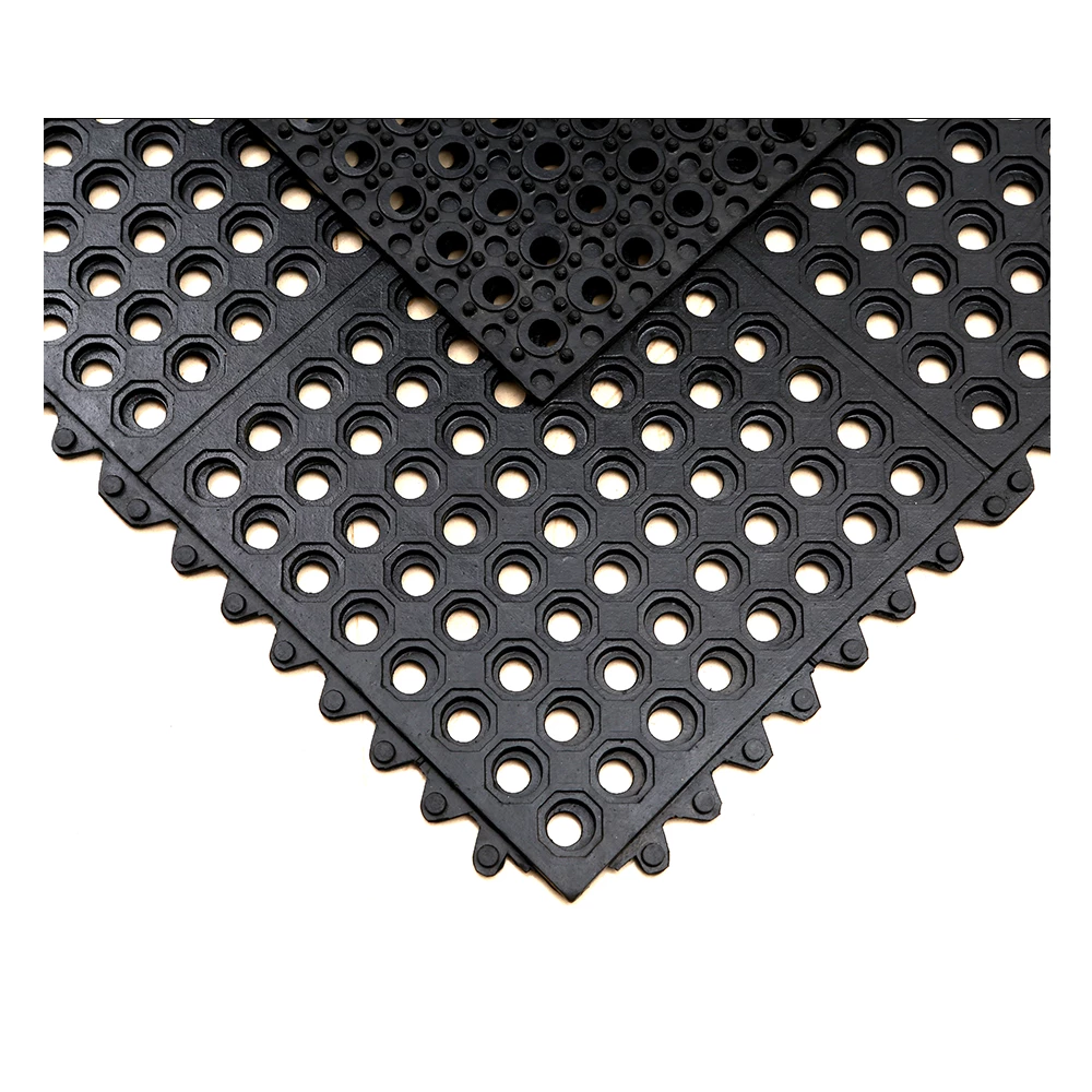 Anti Fatigue – Natural and reclaimed rubber standing mat for anti-fatigue comfort for employees who stand for long periods of time such as cashiers and assembly workers also ensuring a safe footing to maximize productivity while reducing the risk of injury. Interlocking – These mats can be custom fit around any workstation or commercial production, high-traffic areas. Ideal for temporary or portable matting. Perforated – Enhanced drain Holes in this drainage mat allow liquids and debris to pass through, providing a clearer surface. Easy to clean – Interlocking anti-fatigue mats are individually moveable and easy to clean. Slip Resistant – Provides great stability and cushioning and excellent traction wet or dry. Great use in dirty or slippery areas, strong interlocking system securely connects mats, lightweight, easy to clean and install. Recommended uses –garage, workshop, entry ways, laundry room, hot tubs, pools, around the farm, commercial facilities and much more.