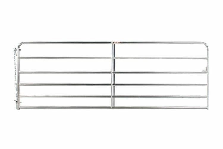 Tarter’s 6-Bar Economy Tube Gate is the perfect gate for access between pastures and entry ways. This gate stands 50″ high with vertical Z braces and is constructed of 1-3/4″ high tensile strength tubing. Featuring continuous-welded saddle joints and our durable, corrosion resistant powder-coat finish for superior longevity. Available in 4′ – 20′.