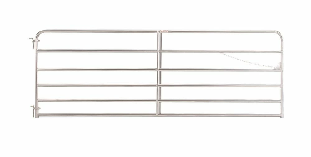 Tarter’s 6-Bar Economy Tube Gate is the perfect gate for access between pastures and entry ways. This gate stands 50″ high with vertical Z braces and is constructed of 1-3/4″ high tensile strength tubing. Featuring continuous-welded saddle joints and our durable, corrosion resistant powder-coat finish for superior longevity. Available in 4′ – 20′.