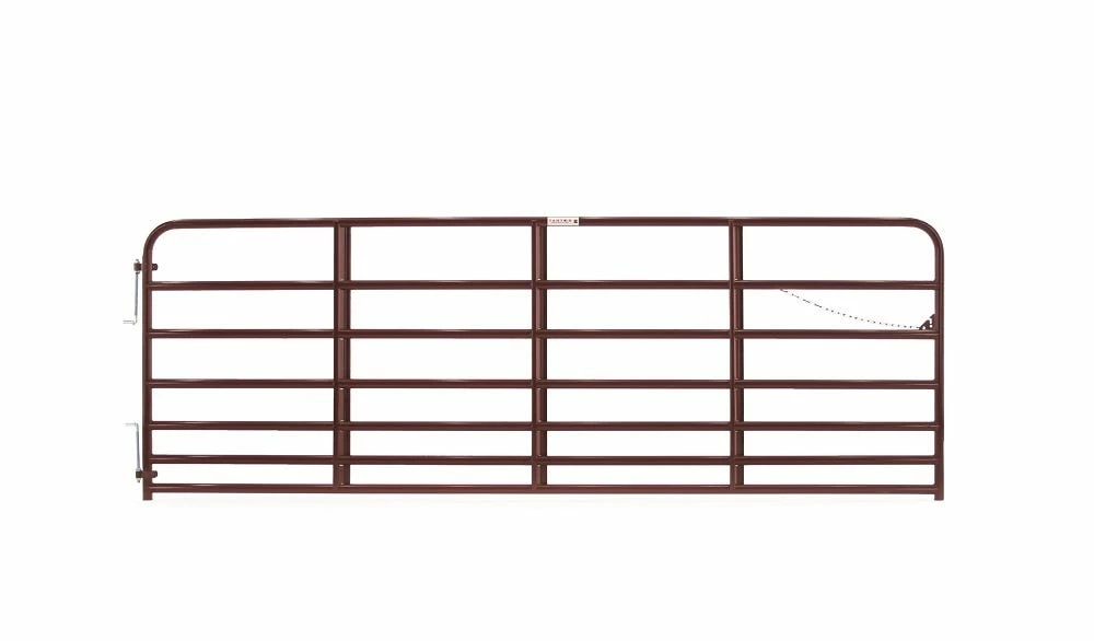 Tarter’s 7-Bar Heavy-Duty Standard Bull Gate is designed for light to medium confinement situations and pasture and field entrances. The gate stands 50″ high and features the vertical Z braces. It is standard with our E-Coat and Powder Over E-Coast to ensure longer life in the field. Available in 4′ – 20′ and in red, blue or green.