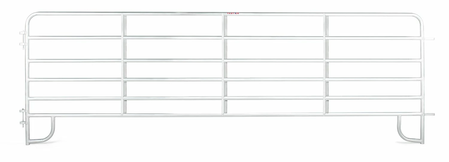 Tarter’s 6-Bar Economy Galvanized Corral Panels are ideal for light confinement and are portable for travel to overnight shows or trail rides. These panels are constructed of 1-3/4″ round high-tensile strength steel tubing with continuous-welded saddle joints and Z braces for superior longevity. Corrals are easily set up with the quick-pin latch system.