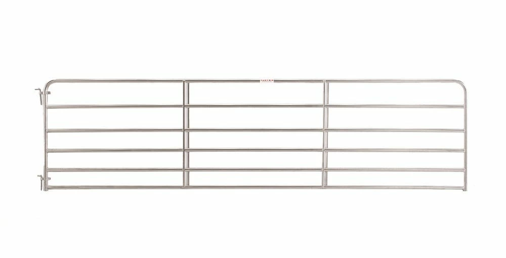 Tarter’s 6-Bar Economy Tube Gate is the perfect gate for access between pastures and entry ways. This gate stands 50″ high with vertical Z braces and is constructed of 1-3/4″ high tensile strength tubing. Featuring continuous-welded saddle joints and our durable, corrosion resistant powder-coat finish for superior longevity. Available in 4′ – 20′.