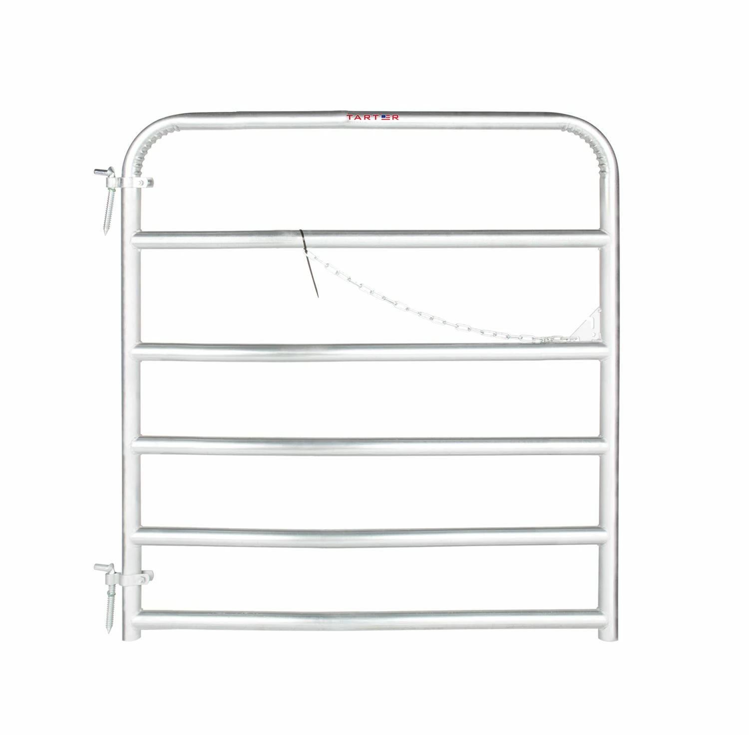 Tarter’s 6-Bar Economy Tube Gate is the perfect gate for access between pastures and entry ways. This gate stands 50″ high with vertical Z braces and is constructed of 1-3/4″ high tensile strength tubing. Featuring continuous-welded saddle joints and our durable, corrosion resistant powder-coat finish for superior longevity. Available in 4′ – 20′.