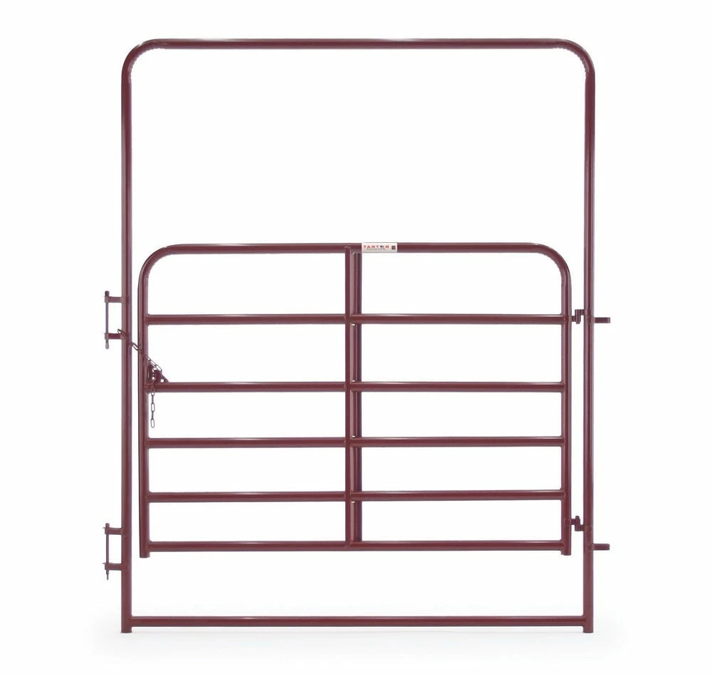 Tarter’s Walk-Thru Arch Gates provides ease of access for livestock and herdsmen into round pens. Our Walk-Thru Arch Gates are available in 1-3/4″ and 2″ round high tensile steel tubing with continuous welded saddle joints. They are available in 4′ or 6′ widths with an 8′ tall arch. Engineered for ultimate reliability and ease of use, Tarter’s Walk-Thru Arch Gates also feature a quick-pin latch system for easy hookup and our single hand sliding lockable gate latching system.