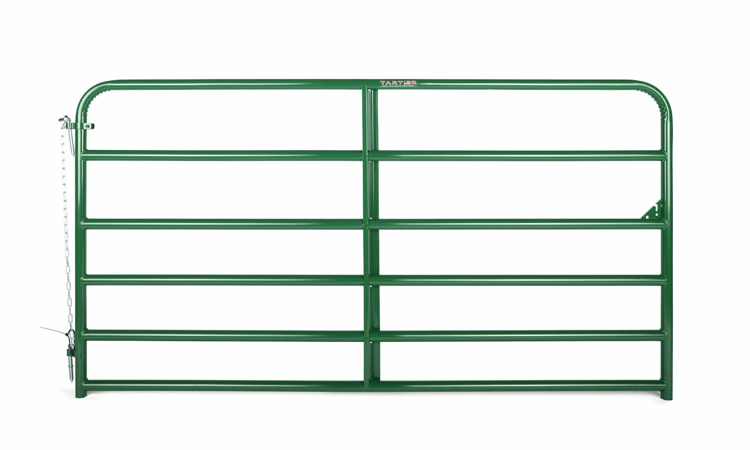 Tarter’s 6-Bar Economy Tube Gate is the perfect gate for access between pastures and entry ways. This gate stands 50″ high with vertical Z braces and is constructed of 1-3/4″ high tensile strength tubing. Featuring continuous-welded saddle joints and our durable, corrosion resistant powder-coat finish for superior longevity. Available in 4′ – 20′.
