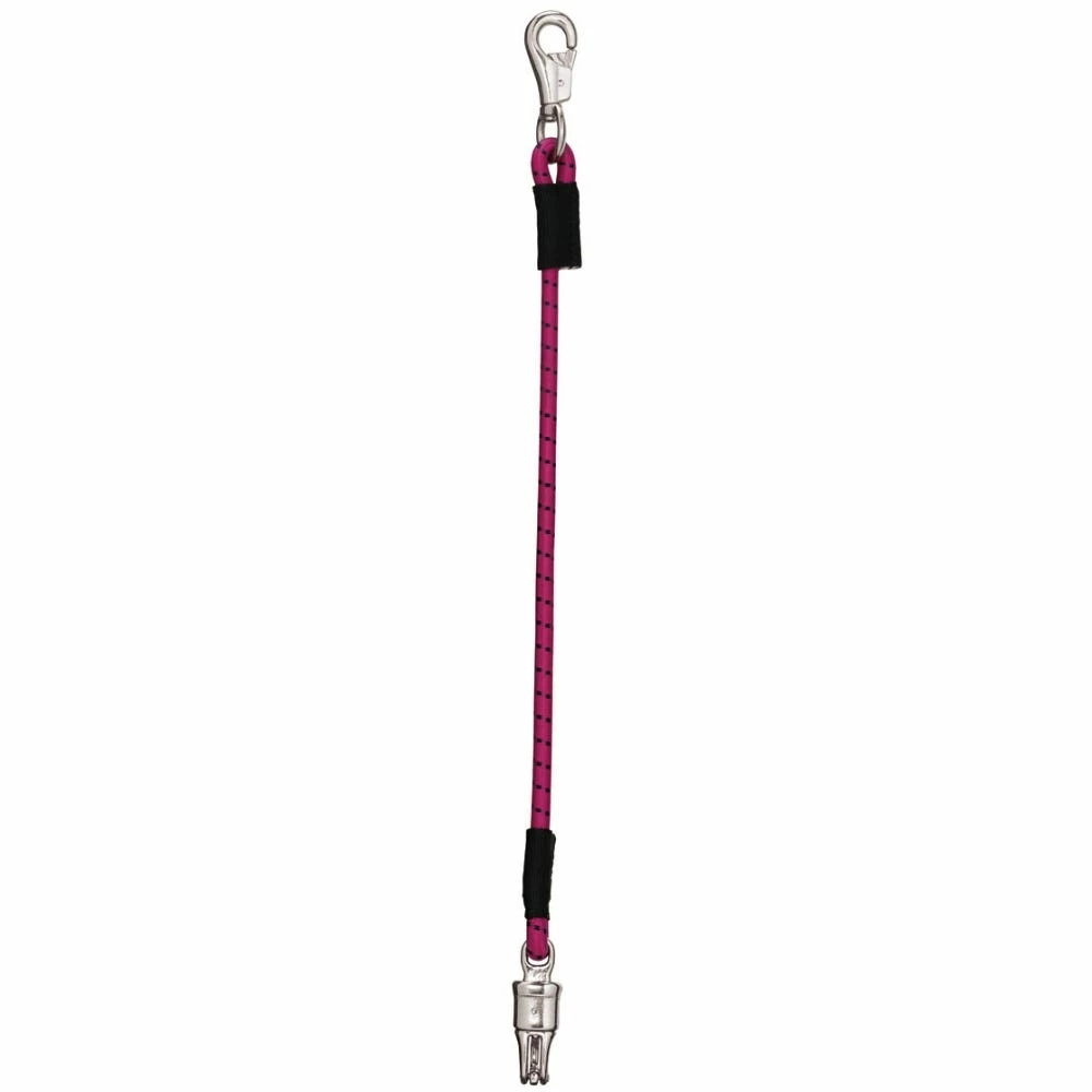 This 23″ long trailer tie is constructed from 1/2″ bungee cord for extra give. Features a quick-release panic snap on one end and a bull snap on the other end. Durable nickel plated hardware.