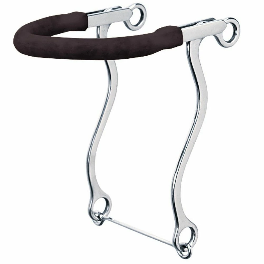 This stainless steel hackamore has a gum rubber covered bike chain noseband and 8-1/2″ cheeks.