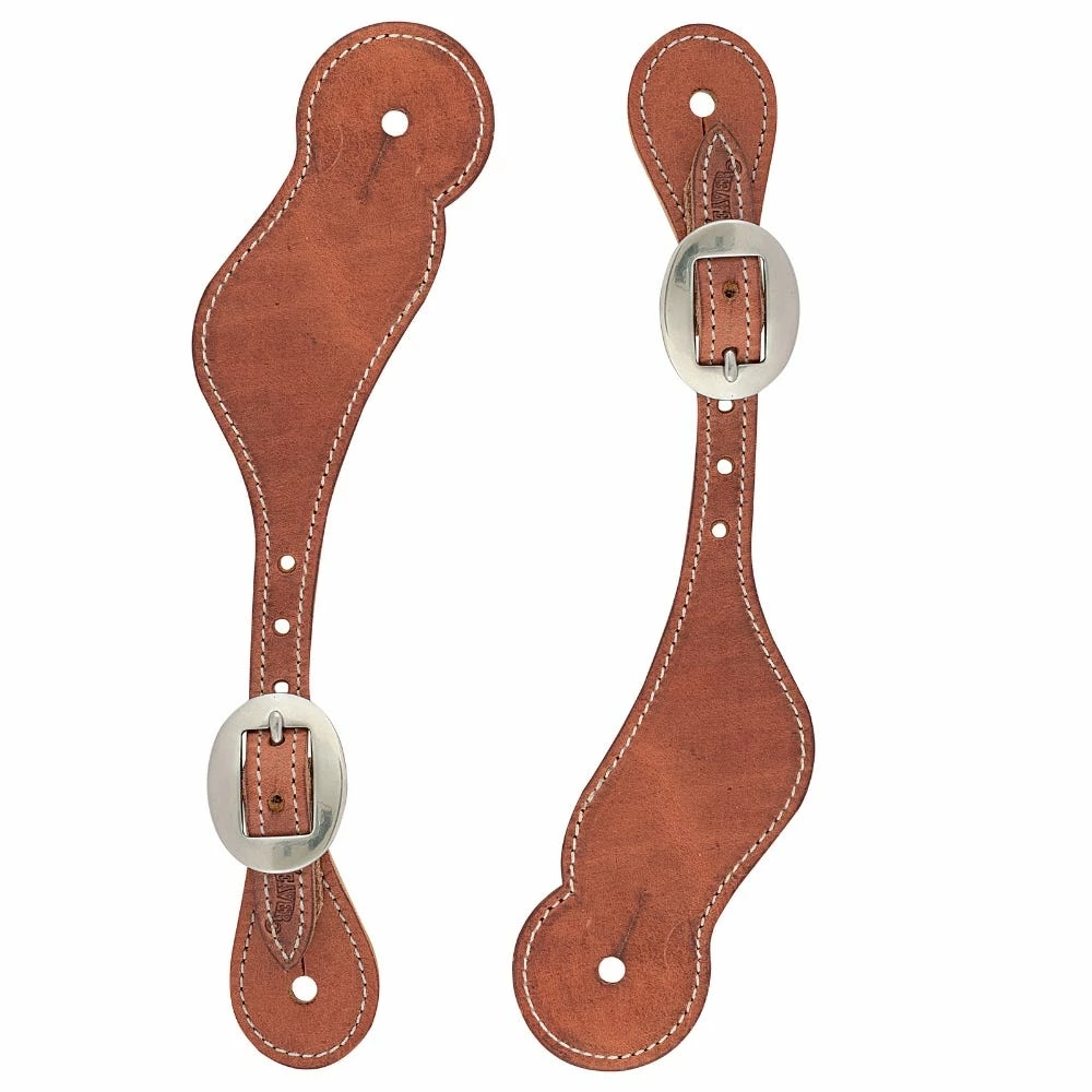 Ladies shaped spur straps are handrafted from premium Hermann Oak harness leather and feature stainless steel cart buckles.