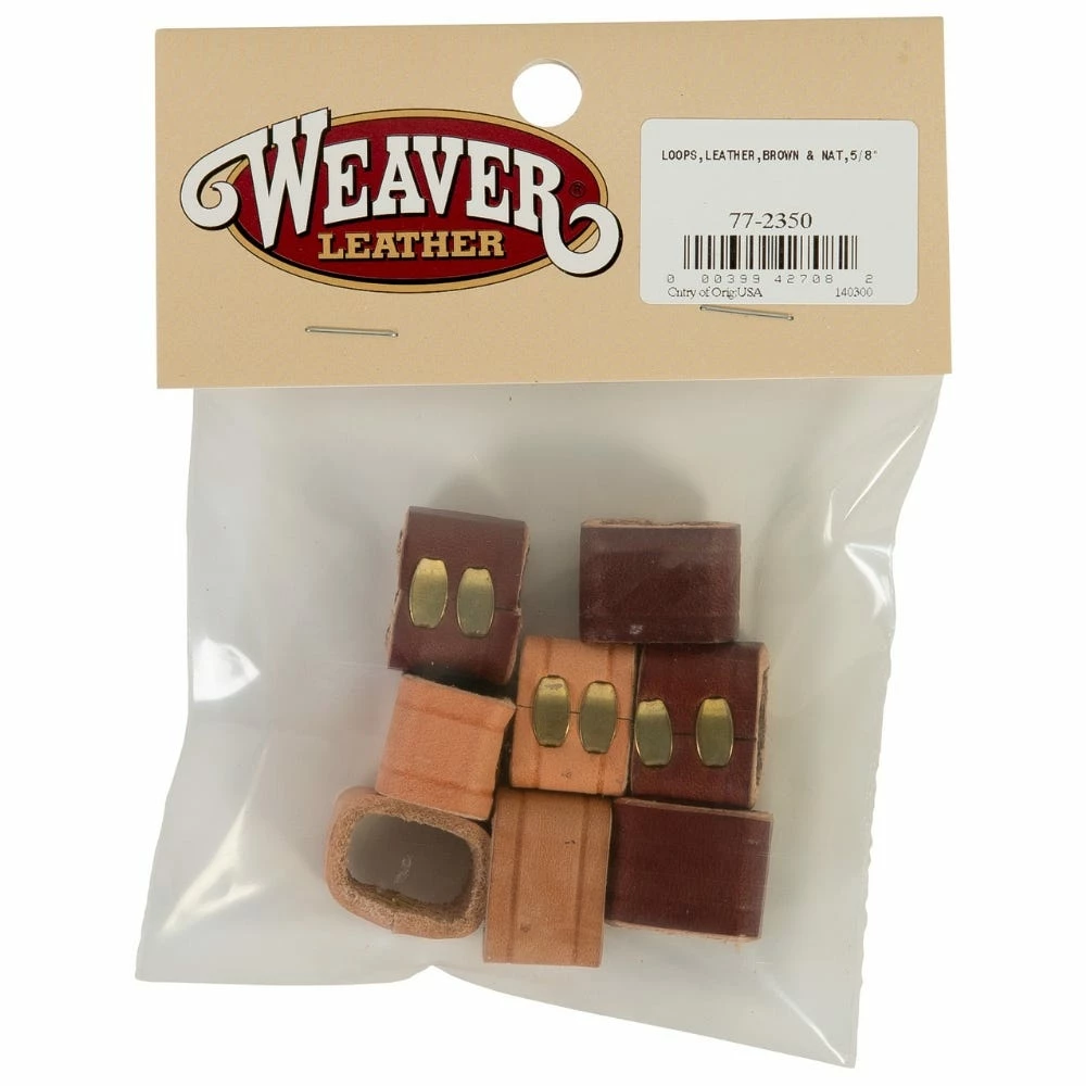 These 5/8″ brown and natural leather loops come in a convenient package of eight (four of each color).