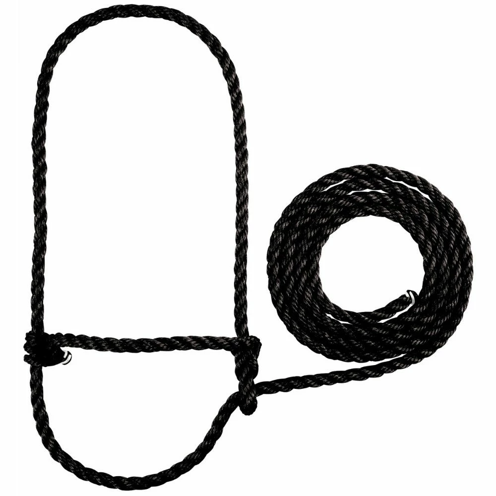 Easily adjustable rope halter is constructed from top quality poly rope. Lead measures approximately 7′ long. Calf size can also be used on sheep and goats