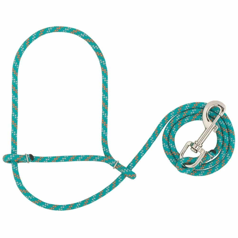 Adjusts easily on the animal and features a snap with a shorter lead that allows you to quickly secure your animal in a pen or wash rack. Poly rope sheep halter is made from traditional “parachute” rope.