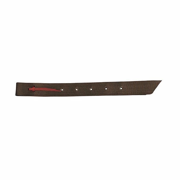 This durable off billet is constructed from top quality brown nylon and features a three hole tie with burgundy latigo leather tie. Measures 1-3/4″ x 39″.