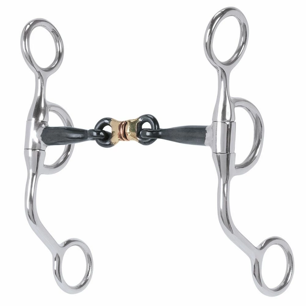 This stainless steel bit features a 5″ sweet iron three-piece mouth and 6-1/2″ Argentine cheeks.