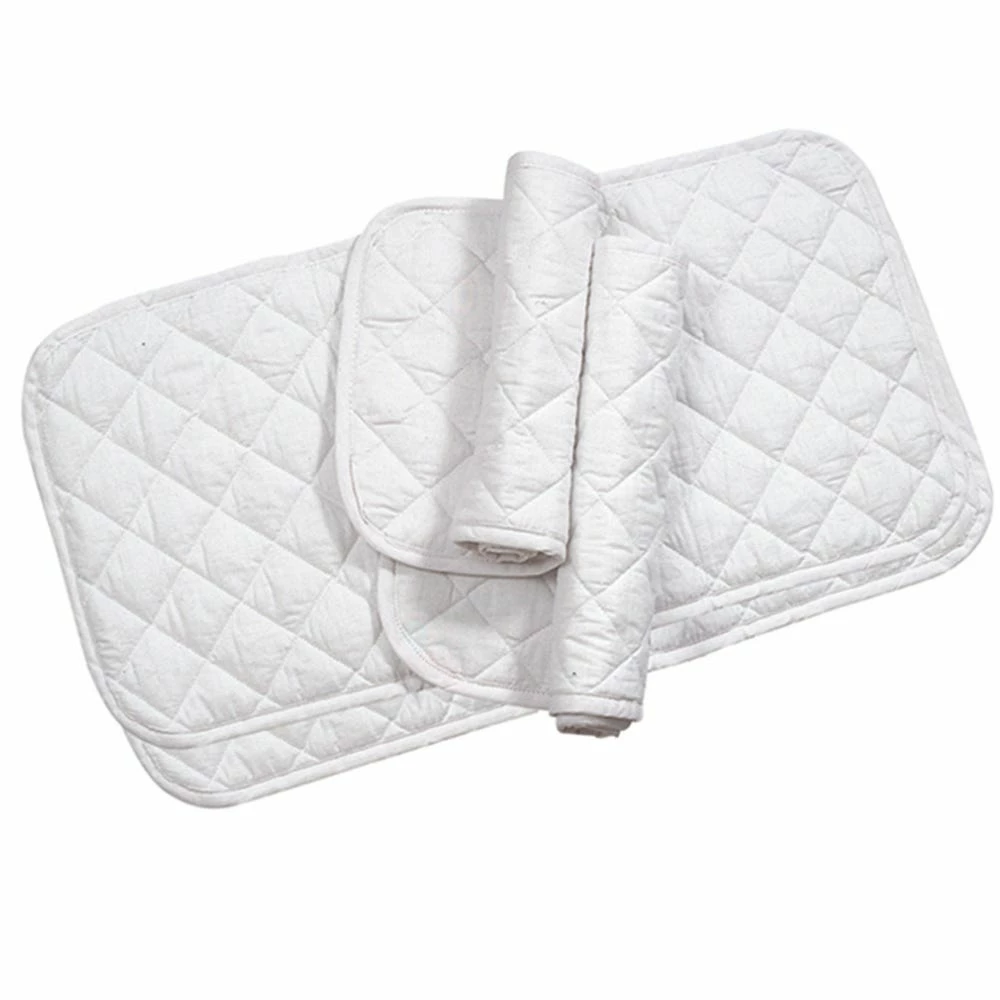 These quilted broadcloth wraps have a bound poly filler. Measure 14″ wide by approximately 27″ long. Machine washable. Set includes four leg wraps.